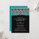 Classy Teal Ribbon & Damask Diamond Housewarming Party Invitations.