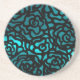 blue-green art deco roses printed on a sandstone coaster - original art by jennifer cunningham