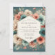 A rich tapestry of deep teal blooms intertwines with soft coral and cream blossoms. This design evokes a feeling of vintage charm and deep romantic sentiment, perfect for a memorable occasion.