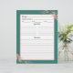 Here's the perfect double-sided recipe page designed to coordinate with its matching binder. The design, both front and back, features a lovely pair of faux rose gold foil botanical leaf foliage at the top right and the bottom left on a teal green background together with room for all the information you need for your recipes. If you have a design question or would like to see this design on another product, please feel free to contact me at jschmidtdesignworks@gmail.com. Design © Judith Schmidt.