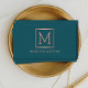This business card features a modern elegant faux rose gold monogram design on a teal background. Personalize it with your own text.