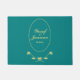 Create a personalized wedding doormat. Features a teal rose design along with the name of the wedding couple and the date of the wedding. Just change the text to fit your needs. Use the template to personalize.