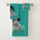 Teal Roses Crows Ravens Birds Crows Bath Towel Set. Black Bird on roses flowers. Garden gray rose flowers and raven birds. Raven and teal background. Raven, Crow or Black Bird Bar Bathroom Towel or Kitchen Towel Home Decor. Customize your Raven black bird towel background color online to create the perfect fit for home decor theme