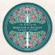 Teal Royal Medieval Silver Sword Wedding Round Paper Coaster
