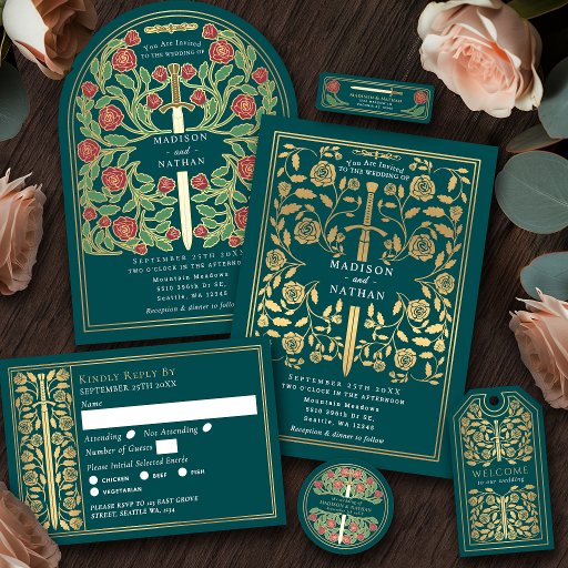 Teal Royal Medieval Sword Wedding Arch Invitation