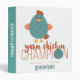 Teal & Rust Yarn Chicken Champion 3 Ring Binder