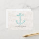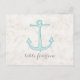 Perfect for a nautical themed wedding is this Rustic Anchor Wedding Table Number Postcard with a teal boat anchor on a light beige marble look background. This classic and simple table card is easy to customize with your wedding details. Find more personalization options by clicking Customize.