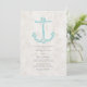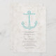 Perfect for a nautical themed wedding is this Rustic Anchor Wedding Invite with a teal boat anchor on a light beige marble look background. This classic and simple invitation is easy to customize with your wedding details. Find more personalization options by clicking Customize.