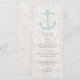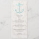 Perfect for a nautical themed wedding is this Rustic Anchor Wedding Menu Card with a teal boat anchor on a light beige marble look background. This classic and simple menu card is easy to customize with your wedding details. Find more personalization options by clicking Customize.