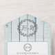 Invite guests to your upcoming wedding with a Teal Rustic Monogram All in One Wedding Invite. Invite design features a rustic wooden background with a simple elegant wreath you can add your monograms. Personalize with the groom and bride's names along with the wedding date and location. Additional wedding stationery available with this design as well.