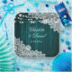 Elegant and romantic rustic teal wedding party paper plates featuring rustic wood, string lights and delicate floral lace.