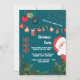This customizable festive Christmas invitation showcases a playful Santa peeking from the side, set against a rich teal background with hanging ornaments, gingerbread, candy canes, HoHoHO and twinkling lights. The combination of teal and red adds a fresh twist to the traditional holiday palette, perfect for inviting guests to a joyful pre-Christmas celebration.
