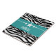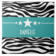 Trendy and modern Sassy Star Zebra Tile featuring a chic black and white zebra print background and a bold turquoise border adorned with a fun star motif. This girly design may be customized with the personalized text of your choosing. Click "Customize It" to find more personalization options.