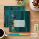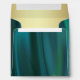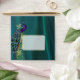Elegant square wedding invitation envelope, done in teal colored satin look, on the outside, and a pale yellowish gold, on the inside of the envelope. A semi transparent text area, on the front is decorated with graphics of a colorful peacock and gold tone flourishes. Golden yellow text return address, on the back flap, is fully customizable and ready to personalize with your information. Lovely finishing touch to our Teal Satin and Peacock Wedding Invitations.