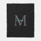 Teal Script Name, Large Grey Monogram on Black Fleece Blanket
