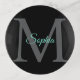 Teal Script Name, Large Grey Monogram on Black Trinket Tray