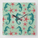 Teal Seahorse Pattern 2 Square Wall Clock