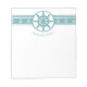 Jot down notes and reminders with a personalized Teal Ships Wheel Personalized Notepad. Notepad design features a teal ships wheel adorned with an anchor lined banner. Additional matching stationery items available with this design as well. If you need assistance with personalization, please contact me directly.