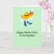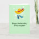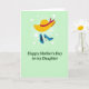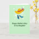 This card shows a soft pastel green background that feels airy and calm, with a gentle, affectionate tone like a shared smile between close family members ❤️. Near the top, a wide-brimmed sunny yellow hat sits as the main feature, trimmed with a red ribbon that adds a sweet, celebratory touch. Just below it, a pair of teal blue high-heeled shoes appears neatly arranged, suggesting someone getting dressed up with care and confidence. The hat and shoes float inside an irregular white shape with a faint glow, giving the scene a light, dreamy lift. Small soft white circles are scattered around like bubbles, adding a tender, daydream-like atmosphere 🌼. In the lower portion, the message “Happy Mother’s Day to my Daughter” is placed centered and written in dark green serif lettering. The upper arrangement is framed by the glowing white outline, with the yellow hat and teal shoes standing out clearly against the pastel green field.