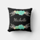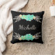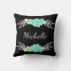Cute throw pillow featuring a custom monogram and teal and silver flowers