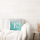 Teal Silver Glitter Brushed Metal Monogram Script Throw Pillow