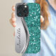 Teal Silver Sparkle Glam Bling Personalized Metal Case-Mate iPhone Case