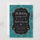 Teal Silver Tiger Stripes Glitter Frame Birthday Invitation