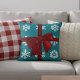 Teal Snowflakes Red Bow Christmas Throw Pillow