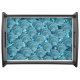 Teal seashell pattern tray with a sparkling background.