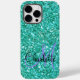 Fun party vibe, teal sparkling glitter Case-Mate iPhone 14 Pro Max Case - text font is customizable and design is transferable-