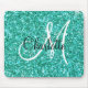 Fun party vibe, teal sparkling glitter mouse pad - text font is customizable and design is transferable-