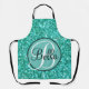 Teal sparkling glitter pattern monogrammed apron