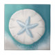 Teal Starfish and Sand Dollar Beachy Ceramic Tile