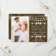 Add your favorite engagement photo or picture to this rustic string of lights save the date card that is part of a fall floral rustic string of lights wedding invitation set in teal mint blue aqua, coral, green, brown, white, yellow and brown hues with a beautiful wood look background reminiscent of a wooden fence and or barrel. An autumnal laurel wreath composed of acorns, berries, sunflowers, tulip rose and white blossoms sit on a leafy branch. The words Save the Date is flanked by two coral hearts. Perfect accompaniment for an outdoor fall, country, farmhouse, barnyard or rural chic themed wedding, bridal shower, anniversary party or couples shower. The back can be customized with the happy couple's proposal story or special message for their guests. The charming twinkle and fairy lights with a bokeh effect look bright, warm and inviting. Artwork © Chrissy H. Studios, LLC. All rights reserved.