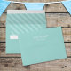 This design features a blue teal stripe striped simple, a minimalist minimal basic plain,5x7 a7 simple envelope, a turquoise coordinating matching blue, a fun whimsical adorable whimsy, a stylish trendy calligraphy script, a modern simple typography text, matching birthday party invitations, a colorful bright teal turquoise, a simple basic teal envelopes