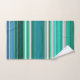 I ordered these towels because I am getting ready to stage my house for sale and wanted some really pretty towels to show off the bathroom. These are an absolutely perfect match for the teal walls and I could not be more pleased. Not only do they look beautiful, they also seem to be very good quality. They are different than any other towels I've had, as the surface fibers are not looped. I love that because I have never liked how most towels have loops that snag and pull no matter how careful you are. I pre-washed them and they came out beautifully. The towels are generously sized and they don't feel flimsy at all. I did not read the description well enough to understand I was paying as much as I was paying for just exactly what was pictured: not a set of two, but a single towel, hand towel and washcloth, so they are way more expensive than I thought (which was a lot, considering). However, I still love them enough that I went ahead and ordered a single additional bath towel so that I would have an actual set, but will need to buy a couple of solid color washcloths. Pricing is weird, because a single wash cloth is priced higher than a large bath towel?? Anyway, if you can afford them, these towels are fantastic. I would never pay this much except to show off a house for sale, but now that I've done it I will love them in my new home as well. Gorgeous! Vibrant Colors and exactly as pictured,..maybe evern better!