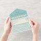 Bright, breezy, and bold—this modern retro all-in-one wedding invitation features pastel teal watercolor stripes with a clean layout, ivory background, and elegant gold rope heart detail. Designed in a convenient seal and send format, it includes RSVP and details sections in one easy-to-mail piece. Perfect for beach, coastal, or summer weddings with a playful, contemporary vibe.