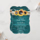 Teal Sunflower Wood Burlap String Lights Wedding Invitation