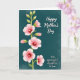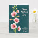 This card features a tall watercolor-style flower rising upward on a deep teal background, with a steady green stem guiding the eye like a gentle gesture between close friends. Along the stem, several open blossoms show petals that shift from a rich fuchsia center to soft blush edges, creating a tender, romantic glow ❤️. Small closed buds appear between the blooms, hinting at quiet moments still to come, and a single ribbed leaf adds a calm, supportive touch to the arrangement. The background looks slightly mottled and textured, giving the cool teal field a softly aged look that makes the flowers stand out. On the open right side, a flowing celebratory message sits in crisp white lettering, balanced with plenty of breathing room. The overall layout feels airy and affectionate, like a fond glance shared in a peaceful garden 🌼. The white message text is placed toward the upper-right area, while the floral stem and blooms climb from the lower-left toward the center.