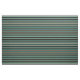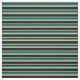 This design features a pattern of stripes having colors like teal, tan, and black.