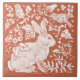 Teal Tan Rust Rabbit Bird Woodland Faces Right Ceramic Tile