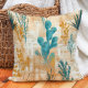 This decorative throw pillow features a rustic desert-inspired design with a turquoise cactus at the center, surrounded by golden botanical accents. Set against a textured beige background, the print blends earthy tones with vibrant teal, creating a warm and artistic Southwestern vibe. Perfect for adding a touch of bohemian charm to living rooms, bedrooms, or outdoor seating areas, this pillow makes a stylish statement piece for Southwestern, rustic, or eclectic home décor.