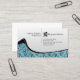 This business card design features a wave shaped bottom with a teal tile pattern as the background. The top section is an off-white background. Both these sections are separated by a blue wavy stroke. Your name and details appear on the top. Perfect for business, administration, serious, minimal, simple themes.