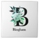Teal Tint Floral Monogram Letter B Ceramic Tile