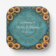 Teal Tooled Leather Sunflower Border Wedding Paper Plates