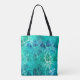 Teal Tropical Palm Leaf Pattern Monogram Tote Bag