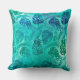 Teal Tropical Palm Leaf Pattern Throw Pillow