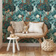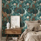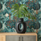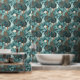 Create a serene and vibrant atmosphere in your home with the "Teal Tropical Paradise" wallpaper. This stunning design features a lush, tropical scene filled with a variety of exotic plants and flowers in shades of teal, green, and blue. Accents of bright orange and soft cream add a delightful contrast, making the flora and fauna come alive against the calming teal background. The intricate detailing of the tropical vegetation, coupled with whimsical birds and cascading waterfalls, brings a sense of tranquility and natural beauty to any space. Perfect for living rooms, bedrooms, or any area that needs a touch of tropical elegance, this wallpaper transforms your home into a lush oasis.