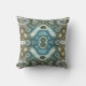 Teal Turquoise Blue Gray Brown Hip Bohemian Art Throw Pillow