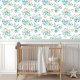 This design showcases a delightful, modern floral pattern in shades of light teal turquoise blue, and sage green set against a white backdrop. It's a sophisticated and stylish design that embodies a charming botanical spirit, perfect for artistic interior designers, decor enthusiasts, trendsetters, and those who appreciate a blend of vintage retro with elegant romantic themes. This decorative and chic feminine pattern is versatile and available on a variety of contemporary home decor items, making it ideal for enhancing the ambiance of spaces such as a master, guest, or children's bedroom, or a nursery.